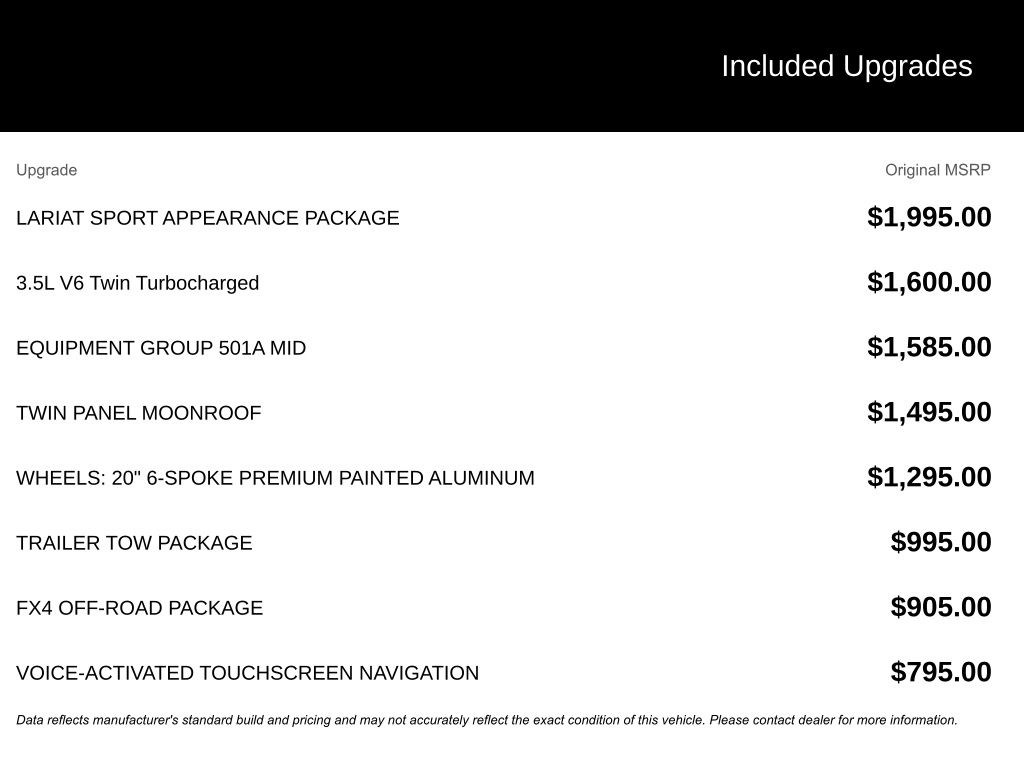 Equipped with a powerful 3.5L V6 EcoBoost engine and 10-speed automatic transmission, this F-150 Lariat delivers exceptional performance and efficiency. The 4-wheel-drive system and off-road-tuned suspension make it a true champion on any terrain, while the extended-range 36-gallon fuel tank ensures you can go the distance without stopping.