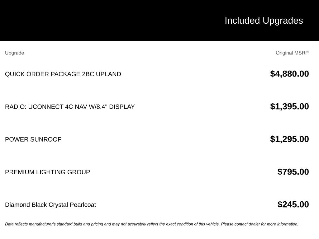 - Radio: Uconnect 4C Nav w/8.4" Display $1395.00 Customer Added Value!