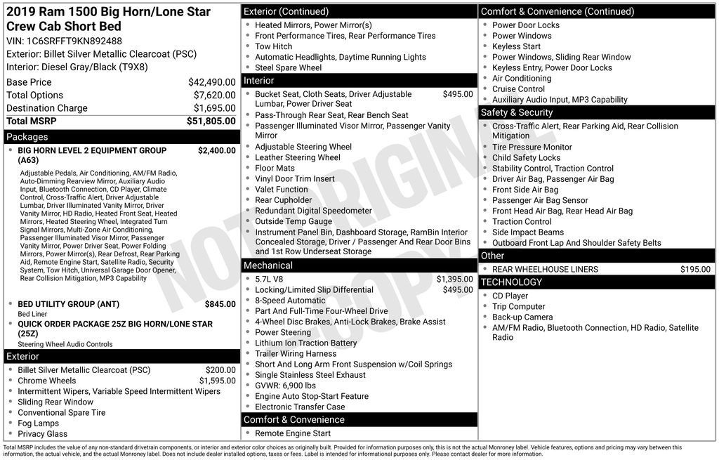 So I optioned first a 2019 Ram Bighorn,8.5 inch nav loaded screen,Level II package,4x4,3:92 axle ELocker,6ft bed.Got pricing from 5 Ram dealerships.Went to 3 Ford dealership’s and all of them never beat the price of the Ram 1500.And these were either ordered or on lots F-150 XLT trim with upgraded to 5.0L V-8 I did not want the V-6 TT turbo engine option to much money with 10 speed.Chevy’s trucks interior was even close in terms of comfort and center-stack just look old schooled.Both the Ford and the Chevy were more money or with in 900.0 dallors of the Ram 1500 but the styling and interior was just way better than the Ford F-150,and the Silverado...GM was not discounting hardly at all so the dealers were bring the price down on there side..Ford F-150’s interior was well just cheap looking with the small screen and hardly had no center storage because the shifter was there,not like the Ram 1500 had. The Ram 1500 center console is just way better design by a mile...Test drove all 3 and the Ram with the coil spring rode the best hands down and was far quieter inside while driving in city traffic during rush hour..My previous truck was a 2014 Ford F-150.I was a brand loyal kinda guy but after all the trips to these dealerships it became evident the Ram 1500 was the easy choice with my hard earn dallor..