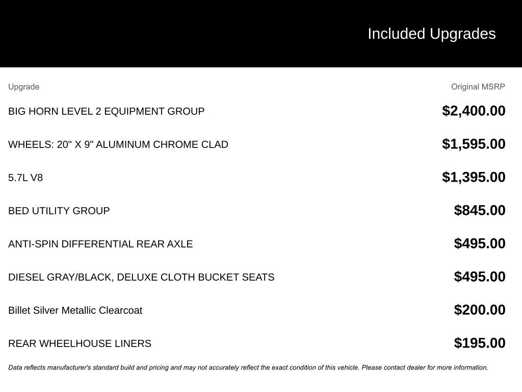 - 5.7â"Liter V8 HEMI® MDS VVT Engine $1395.00 Customer Added Value!