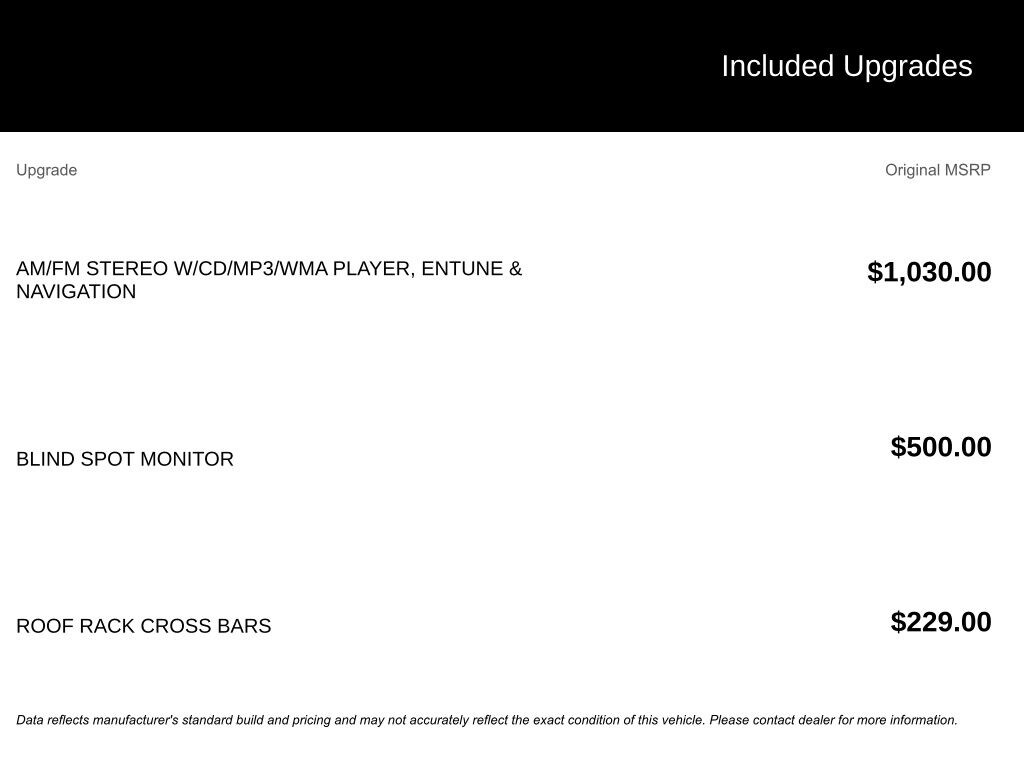 * The advertised price does not include sales tax, vehicle registration fees, other fees required by law, finance charges and any documentation charges.