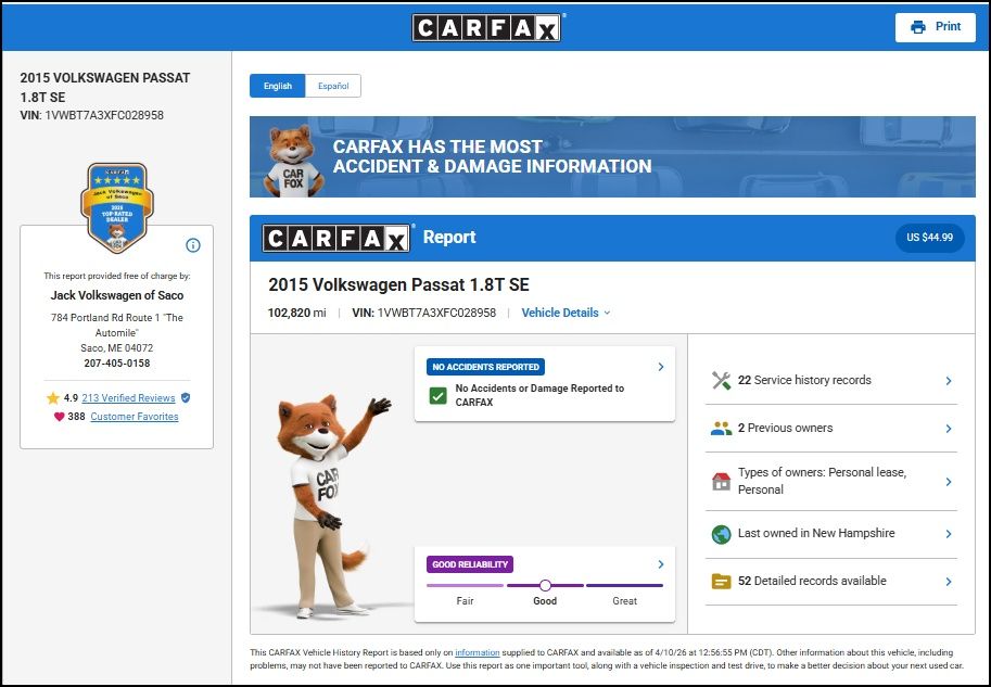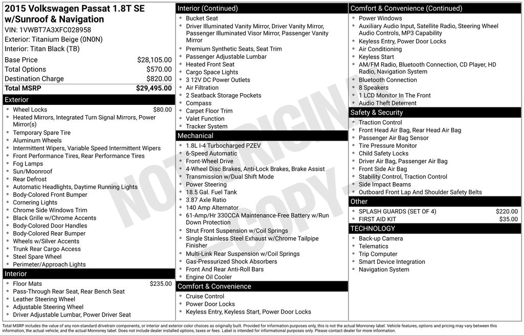Whether commuting to the office or embarking on a weekend getaway, this 2015 Volkswagen Passat 1.8T SE w/Sunroof/Nav is the perfect companion. Meticulously maintained and backed by our rigorous inspection process, this sedan is ready to provide years of reliable and enjoyable ownership.